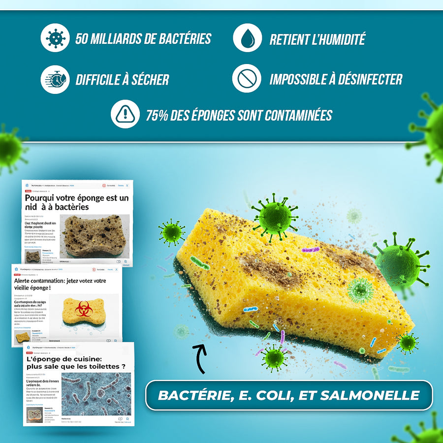 En quelques jours, une simple éponge peut contenir des milliards de bactéries, impossibles à éliminer complètement.