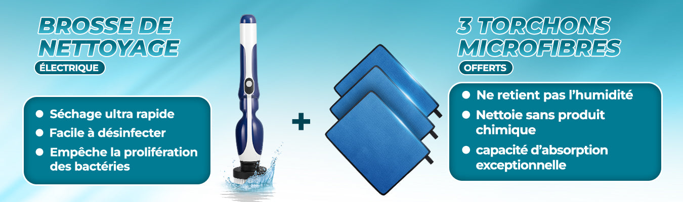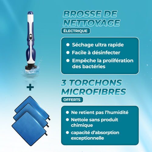 profitez de 3 torchons microfibres OFFERTS avec votre brosse électrique
